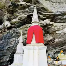 It became a trend on social media when a famous fortune teller recommended to worship and ask for blessings from Tawut Khao Daeng or the angel of Khao Daeng at Wat Khuhasantyaram or Wat Tham Khao Daeng, Hin Tok Subdistrict, Ron Phibun District, Nakhon Si Thammarat Province. The locals have been connected to Tawut Khao Daeng since their ancestors. There is a legend that has been passed down and it is a spiritual support for the locals.