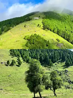 This year, I was fortunate enough to climb a long-awaited mountain ⛰️, which has a charming scenery similar to Xinjiang. This mountain is famous for its unique mixed landscape of alpine meadows and tower-shaped coniferous forests. The vast grasslands are full of cattle 🐮 and sheep 🐏, making it a paradise for photography enthusiasts.