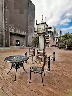 Fourth stop: Republic of China Town, a scenic area themed around the culture of the Republic of China. With a train track as the central axis, it recreates the Western-style buildings and life scenes of the Republic of China period, giving a sense of time travel. At night, the neon lights make it lively and bustling.