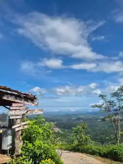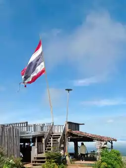 Phu Thap Fa 360 Degrees is a cafe serving tea, coffee, various beverages, milk and butter snacks, and rice porridge. It also offers camping-style accommodations with a 360-degree view, offering both sunrise and sunset views. At night, the stars shine brightly and beautifully. It's truly beautiful, so beautiful you won't be able to sleep! But Som Sri slept all day. With such a wonderful atmosphere, how could she not relax? Som Sri said.