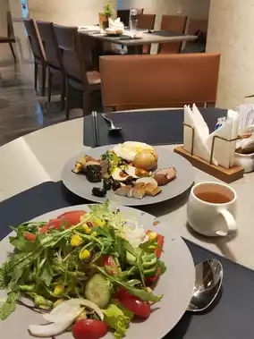 The next day's breakfast is at the Yuehu Xuan restaurant on the first floor, which is not large but quite stylish, with local specialties such as donkey burger, Baiyangdian salted duck eggs, and date flower pastry, showing sincerity.