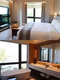 Xiong'an International Hotel is located in Rongcheng, Xiong'an New Area, Hebei, and is an ideal choice for a family vacation! This 5-star hotel is not only luxurious, but also features a Chinese garden style🏯, making you feel like you're in an ancient palace garden🌹. The hotel buildings are planned in a central axis symmetry, with a north-south ceremonial axis, majestic and calm, surrounded by winding water, and a welcoming atmosphere.