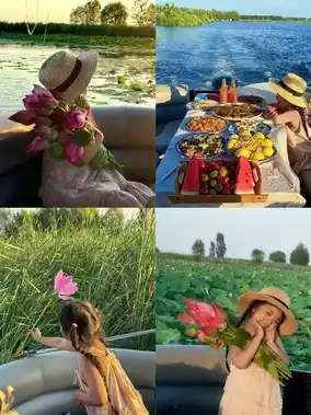 1. **Morning**: Take a boat from the pier → **Lotus Grand View Garden** (thousands of acres of lotus ponds) → Take photos at the **Lotus Viewing Corridor**