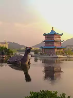2⃣ Visit the Longxia Lake Park opposite the hotel. The park is free, with heavy traces of artificial carving, but it's nice to take a walk with the baby after dinner to enjoy the sunset