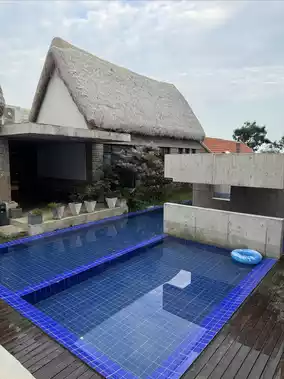 The backyard has a 🪷lotus pond, 🏊swimming pool, ☕️cafe,