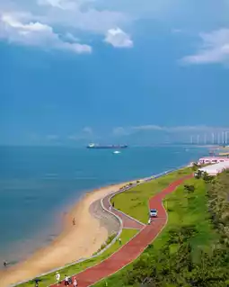 10-minute drive: glass-clear waters + diamond-white sand + British-style blue bridge. Water sports and island culture festivals last till midnight~
