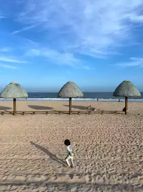 Pros: Fine sand, clear seawater, stone and shell collecting, pavilions, almost no people, very suitable for relaxing! Suitable for swimming (but be cautious)