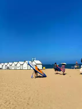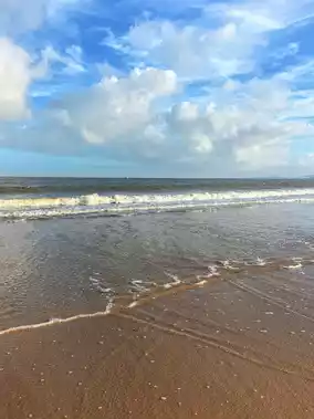 Pros: Almost no people, clear seawater, large wind turbines along the coastline look great, free foot rinsing pool