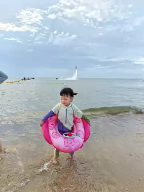 Pros: Suitable for swimming, close to downtown, swings to play on, there’s a Mixue Bingcheng right on the shore~