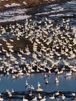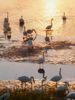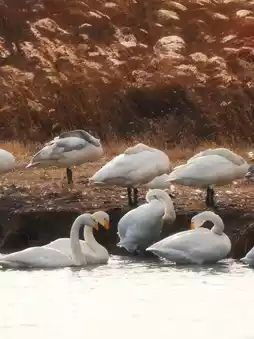The reeds rustle gently in the wind, accompanied by the swans’ calls