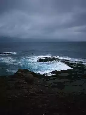 🌊 Waves crash against the black basalt