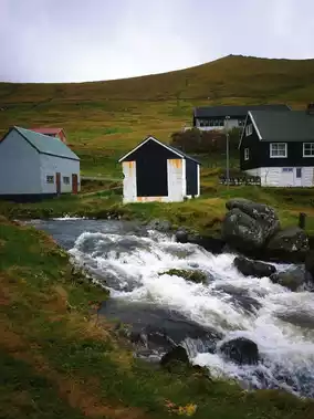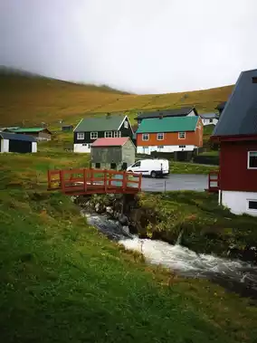 🚩 Red houses scattered among the mountains
