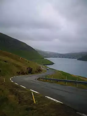 A winding road stretches along the lakeside🏞️