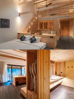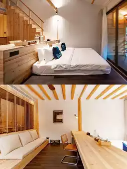 ▪ It features 12 unique rooms, combining natural wood and white walls