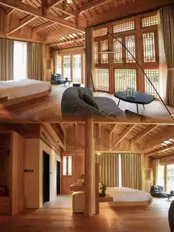Moonlight Mountain Residence uses traditional Dong ethnic wooden structure architecture, and the all-wood design makes you feel like you've traveled back to an ancient Dong village. Each room faces the river or backs onto a bamboo forest, and the most stunning feature is the smart air conditioning system in the room, making it warm and comfortable even in the mountains.