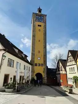 Plönlein is arguably Rothenburg's most iconic image, a classic "fairytale town" in many people's minds. A narrow cobblestone street splits into two, one leading to the towering Siebersturm tower and the other to the Kobolzeller Tor city gate, creating a perfect visual composition. The yellow half-timbered house in the middle looks like a small house straight out of a fairytale illustration, warm and dreamy.