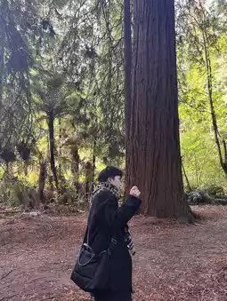 Sunlight filters through the towering 60-meter-high redwood trees, filling the air with the fresh scent of leaves and a light mist. This place feels like a scene straight out of a Studio Ghibli animation.