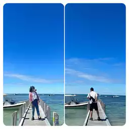 The seascape is very beautiful, with a blue-green gradient