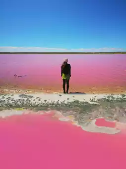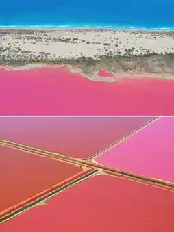 📍Hutt Lagoon Dreamy Pink Lake + Indian Ocean Blue: You can go to the Port Gregory Road lookout or take a helicopter to enjoy the pink lake.
