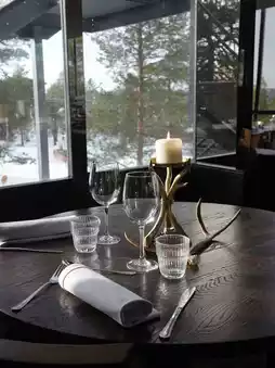 Guests can enjoy breathtaking views of the Ounasvaara forest through large windows, and depending on the season, they may also witness the aurora borealis or the midnight sun while dining. 🕊️