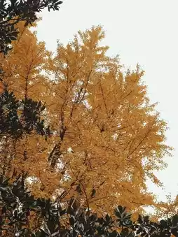 Encountered the ancient ginkgo trees shining brightly in the sunset