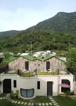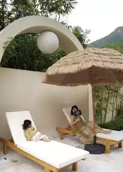 We stayed at a homestay themed around intangible cultural heritage, where you can find elements of blue calico everywhere. The place features a swimming pool, a garden, a farm, and even a camping base.