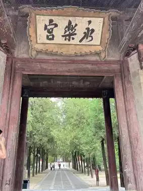 Originally located in Yongle Town, 20 kilometers southwest of Ruicheng County, the palace was relocated between 1957 and 1966 due to the construction of the Sanmenxia Reservoir, following instructions from Premier Zhou Enlai. Covering over 8,000 square meters, its central axis features ancient buildings such as the Mountain Gate, Dragon and Tiger Hall, Wuji Hall, Chunyang Hall, and Chongyang Hall.
