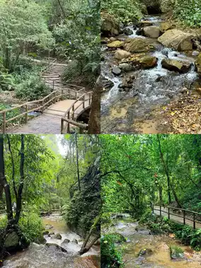 📍Moli Waterfall: Located in the Moli Tropical Rainforest Scenic Area, this 60-meter waterfall boasts the highest negative ion concentration of any natural forest oxygen bar in China.