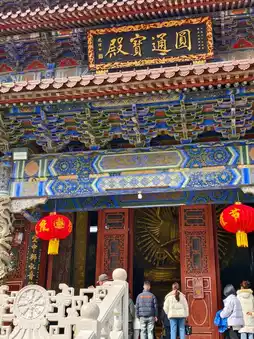 After entering the scenic area through the mountain gate, you still need to walk about 500 meters to the core area. The road is flat, and if there are no elderly people, there really is no need for the sightseeing car. Entering through the Cooperation Gate is the Hall of Heavenly Kings, and crossing the stone bridge after passing through the Hall of Heavenly Kings is the Mahavira Hall, with the bell and drum towers on both sides. Behind the Mahavira Hall are the Circular Hall, the Samantabhadra Hall, and the Manjusri Hall.