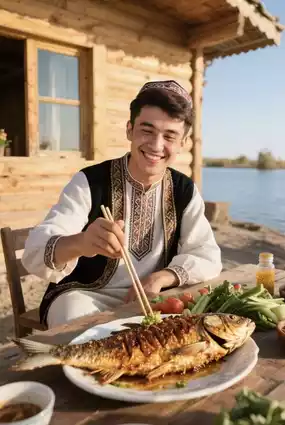 **Bosten Lake Five-Striped Fish Banquet**: Steamed fish drizzled with sizzling oil, naan soaked in rich broth (limited at Huxi Fish Restaurant).