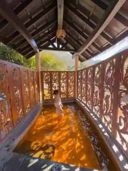 The hot spring area is built in Balinese style. It not only has thatched steam sauna energy rooms, but also 40+ open-air hot springs with different themes, beauty-themed rose pools, milk, lavender, health-themed mugwort leaves, and waterfalls... to achieve a variety of hot spring bathing styles.