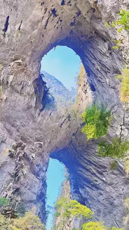 [Two] Fairy Bridge: The most spectacular natural arch bridge in China, the bridge is 198 meters long and 98 meters wide. At the bottom, there are unique landscapes of "fairy delivering a child" and "fairy pointing the way".