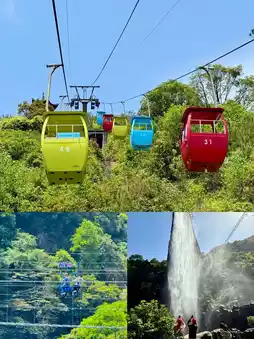 3. Afternoon: Experience the Cloud Waterfall, a 168-meter-high waterfall cascading down from the top of the mountain. Feel the majestic momentum and the mist blowing in your face on the viewing platform. Then we challenged the high-altitude glass bridge, which is more than 300 meters long. There is a deep abyss under our feet and continuous green mountains around. The bridge shakes a little, which is exciting and fun. You can even see a rainbow when the sun is shining. Walk across the glass bridge, arrive at Hongfu Pan, and take a photo with the huge Chinese character "Fu". Then take the elevator down the mountain and experience the real-life version of "QQ Speed" - a car flying in the clouds, with 360-degree turns and self-controllable speed. Finally, head to the Ocean Park to watch various fish and mermaid performances. Visitors with children should not miss this.