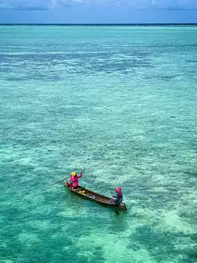 Here, water isn’t just clear—it’s crystalline poetry. Glide through turquoise shallows, swim alongside sea turtles, or float under starlit skies on a Bajau boat. 🌌⛵ The local Bajau Laut people—"sea gypsies"—live in harmony with the tides, their floating villages adding soul to Semporna’s natural wonder. 🛶✨