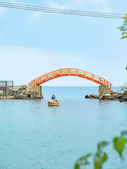 I wanted to take a photo of this red bridge and the tub boat, so I decided that I would definitely ride the tub boat here!