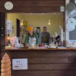 This is a small cafe on Sado Island, Niigata Prefecture, which is very homey, surrounded by many trees. Most importantly, there are 3 cute dogs to welcome you. They are so cute. In addition, the shop also offers coffee, non-coffee, ice cream and desserts. If you have a chance to visit Sado Island, don't forget to stop by the cafe and say hello to the dogs. I must say that they are very cute. 😍😍