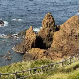 This is a large rock located in the northern part of Sado Island, Niigata Prefecture. The rock looks like a sea turtle. The highlight of this place is perfect for those who love nature because there is a nature trail that takes you up to the viewpoint on top of the rock, taking about 15-20 minutes. You can see the beautiful and magnificent scenery.