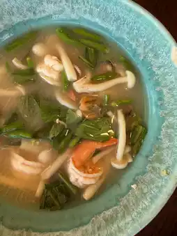 A famous rice soup shop in Bangsaen with a special menu of dry rice.