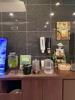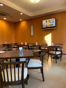 Oh, and this is a great place for breakfast. You can eat breakfast, take a bath in the large public bath, and check out or start your day of travel refreshed.