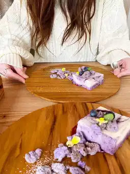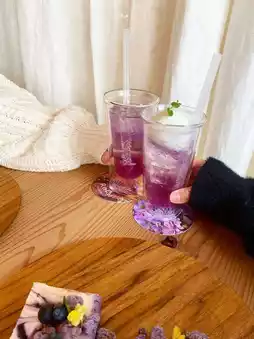 On this day, I had a flower cheesecake and a cute purple drink.
