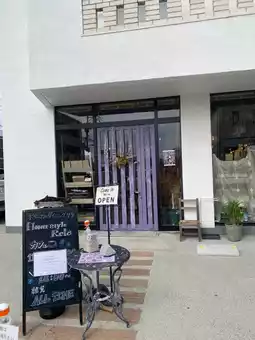 A cute cafe in Saga Prefecture with lots of flowers.