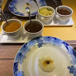 Recommended! Two-Color Curry Course: ¥3,100. Choose from two curry courses, seafood hors d'oeuvres, and two curries of your choice. Dessert! 🍛 We chose traditional beef curry, spicy Thai green curry, spicy Javanese curry, and Ceylon-style Ariake chicken curry.