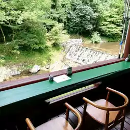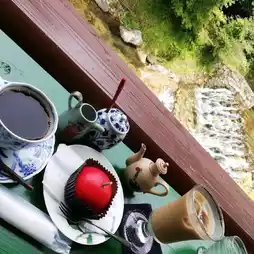 Enjoying a cafe ☕😌✨ while soaking up the negative ions of the gentle river flow and sounds 🎶 is a truly relaxing experience!