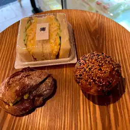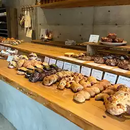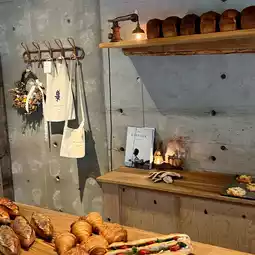 In a stylish interior with a wood grain motif, there were a variety of delicious-looking breads lined up, including sandwiches, hard breads, and meal-type breads