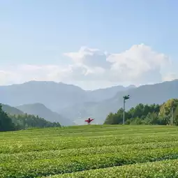 If you go up the winding road, you can see open scenery and green tea fields