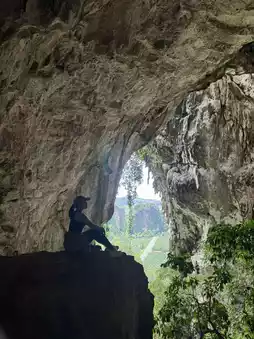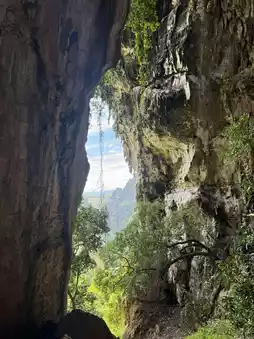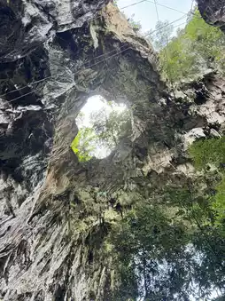 The hike takes approximately 45 minutes, covering a distance of about 1 kilometer. It is not suitable for children due to the steep and challenging paths that require climbing.