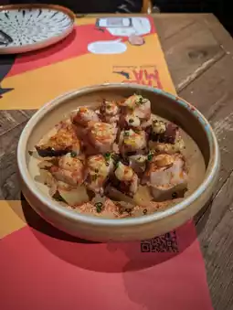 The octopus is fresh and bouncy. The potatoes are crispy on the outside and soft on the inside