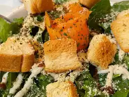 This salad tastes fresh, with the salty aroma of smoked salmon perfectly paired with the rich Caesar dressing. The crisp texture of the lettuce adds a refreshing crunch, making it an appetizing starter.