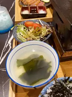 I ordered 2 appetizers, 2 wagyu beef set - Gillette wagyu steak and a mouthful of wagyu beef, with the meal with miso soup, dipping sauce, salad, pickles and a bowl of white rice. The meat was tender and unforgettable with a beautiful splash of oil.