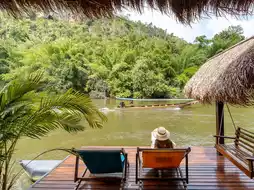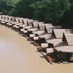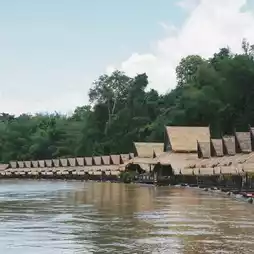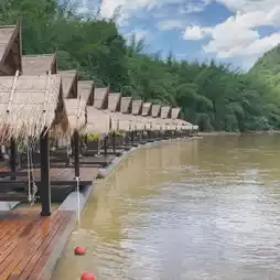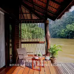 'The FloatHouse River Kwai' is a luxury floating resort that floats in the middle of the Kwai Noi River, amidst tropical forests and towering mountains in Sai Yok District, Kanchanaburi Province. This resort can only be reached by boat because it floats in the river surrounded by lush forests. It is built of teak and bamboo, reflecting the concept of local Thainess, combining the forest with the luxury of the accommodation that floats in the Kwai River perfectly.